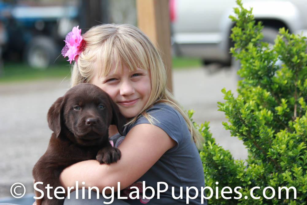 Hadley, is a dark chocolate 79 pound labrador that loves to please. She is very gentle with children and puppies. Hadley has a beautiful block head, great balance, front and rear assembles top line and otter tail. Her Dad is Tucker and she was the pick of her litter. Very sweet, smart and loving girl.