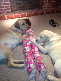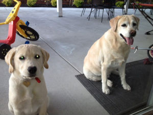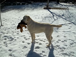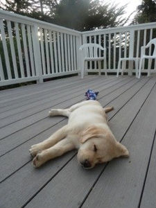 Just wanted to let you know how much we are just loving our Bailey. Thank you so much for breeding such a wonderful dog! Our family has adjusted again to a 2 dog family and our Ashley couldn't be happier. The first 2 weeks took some time for her to adjust to a new dog in the house but now she's back to being our happy lab and is no longer depressed being alone! We catch them outside during the day cuddling during naps and Bailey is constantly grooming Ashely. Hope all well at your ranch!