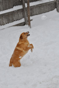 I have attached some photos of Willow playing in the Colorado snow today. She is a little over 2 years old now, and doing very well.