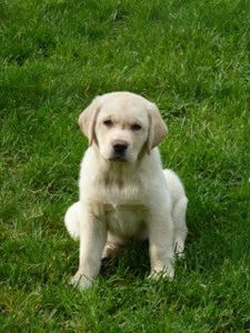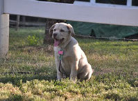 Just wanted to let you know that Sadie our little yellow lab is doing well. We want to thank you for taking her back for a few days while she wasn't feeling so well. We took her to the vet for her 12 week checkup and shots and she has already gained six pounds and is growing quickly. The vet said she is doing good. She is a very smart dog...almost potty trained...can sit on command...and comes when we call her. We love her so much...she has become one of the Pope's. Thank you for providing us with such a good puppy. This picture is at 10 weeks...haven't downloaded our newest ones....but of course she is the most beautiful puppy ever.