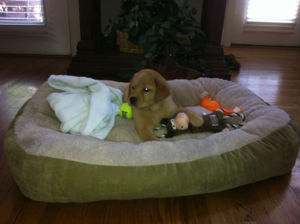 We are very happy with Stella, she’s doing very well, housebreaking coming along fine…