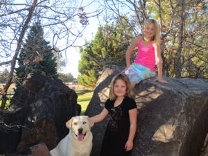 Our 3 yr old lab Shelby, our daughter And Cobra.