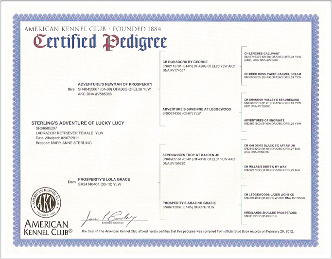 Lucy, is our Newman’s daughter she is a beautiful light yellow English Labrador retriever with a positive attitude and tons of personality. Three out of four Grandparents are Champions. She is a well-built, 80lb labrador which is very correct and pretty with a gorgeous blocky head and thick coat. Lucy is very loving, gentle and sweet with kids and other animals.