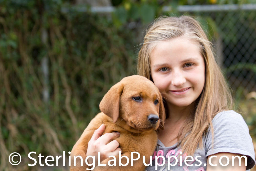 Pippi is a beautiful dark fox red, 85 pound loyal Labrador retriever with a positive attitude and tons of personality. She is a well-built, lab which is very correct and pretty with a gorgeous blocky head, short muzzle and extra thick fox red coat. Pippi has an excellent pedigree with several famous lines. Her mom is Rita, sister Stella Rose and brother Buddy all can be viewed on our web site or in person at the ranch. Pippi is being shown by our daughter Jennifer in 4-H showmanship.