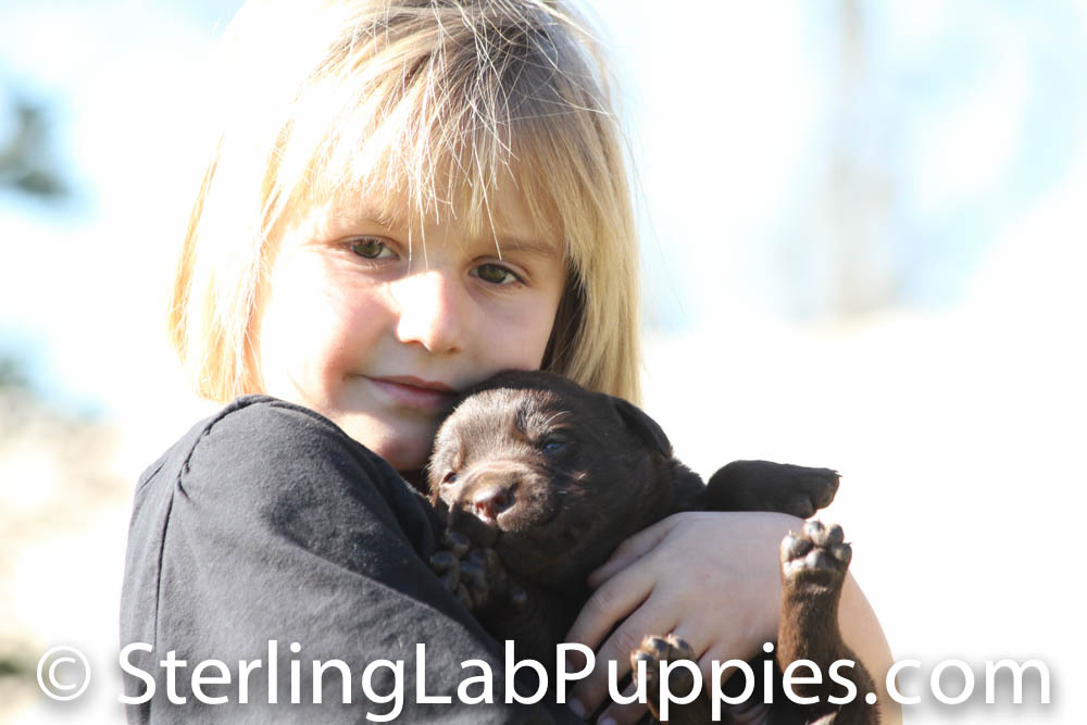 Hadley, is a dark chocolate 79 pound labrador that loves to please. She is very gentle with children and puppies. Hadley has a beautiful block head, great balance, front and rear assembles top line and otter tail. Her Dad is Tucker and she was the pick of her litter. Very sweet, smart and loving girl.
