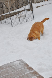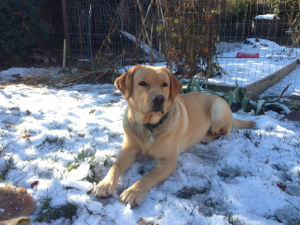 I have attached some photos of Willow playing in the Colorado snow today. She is a little over 2 years old now, and doing very well.