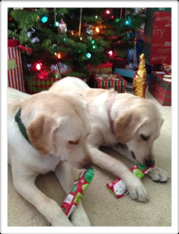Just wanted to let you know how much we are just loving our Bailey. Thank you so much for breeding such a wonderful dog! Our family has adjusted again to a 2 dog family and our Ashley couldn't be happier. The first 2 weeks took some time for her to adjust to a new dog in the house but now she's back to being our happy lab and is no longer depressed being alone! We catch them outside during the day cuddling during naps and Bailey is constantly grooming Ashely. Hope all well at your ranch!