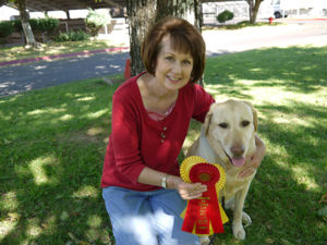 Honey earned her Rally Obedience Advanced/Excellent Title today!! She did good and is now officially finished with Rally. Next year back to Obedience and try for the highest level, which is called Utility. I think I found a trainer to work with to help us, so over the winter we will be working on it. I sent a couple of photos of Honey and I at the trial.