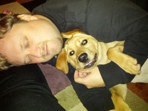 She is so mellow - just as we hoped - but thought that might be years away! She fits our lifestyle perfectly - we try not to gush about her or the breeders to everyone - but it's hard not too!
