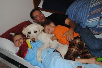 Thank you Just an update: buddy is sleeping inside with the boys in crate but also likes their beds. No accidents or issues. He goes on morning walks, plays fetch, stays on his blanket in the living room when told, loves car rides. He did jump in our pool and then got a bath which he sat perfect for. We found his special spot for scratching his belly -lays on his back with his paws up. He is very gentle and loving. We are enjoying him so much. You and Ron did a great job training him to be such a great dog. We are so happy he is part of our family. Thank you